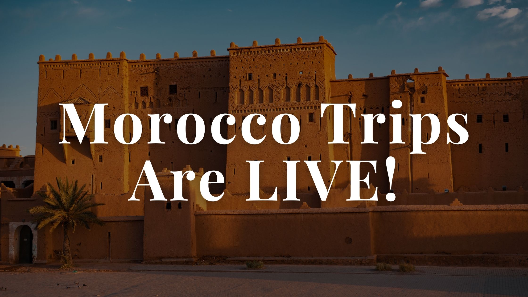 Dates: March 13-20, 2022 May 2-9, 2022 May 29-June 5, 2022 September 4-11, 2022 October 9-16, 2022 November 20-27, 2022 Early Signup Price: $1,195 Itinerary: Day 1: Arrival in Marrakesh Day 2: Explore Marrakech Day 3: Experience the culture of the High Atlas Mountains Day 4: Ouarzazate City Day 5: Erg Chebbi Dunes & Desert Camping Day 6: Desert Sunrise and the Todra Gorge Day 7: Ait Benhaddou Day 8: Relaxation & Departure | |